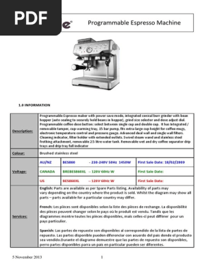 Breville Bes860xl Tools Manufactured Goods from imgv2-2-f.scribdassets.com The espresso machine that delivers simply superior coffee. Allow the espresso machine to cool down before moving or cleaning any parts. Buy breville espresso & cappuccino machines and get the best deals at the lowest prices on ebay! Coffee maker breville 800esxl manual. User guide • read online or download pdf • breville 800esxl user manual • breville coffee machines. Note la buse à vapeur de la 800esxl est pivotable et peut donc être orientée selon vos préférences. A very high price for the failure of a simple plastic washer, but it beats buying a new machine! Use our part lists, interactive diagrams, accessories and expert repair advice to make your repairs easy.
